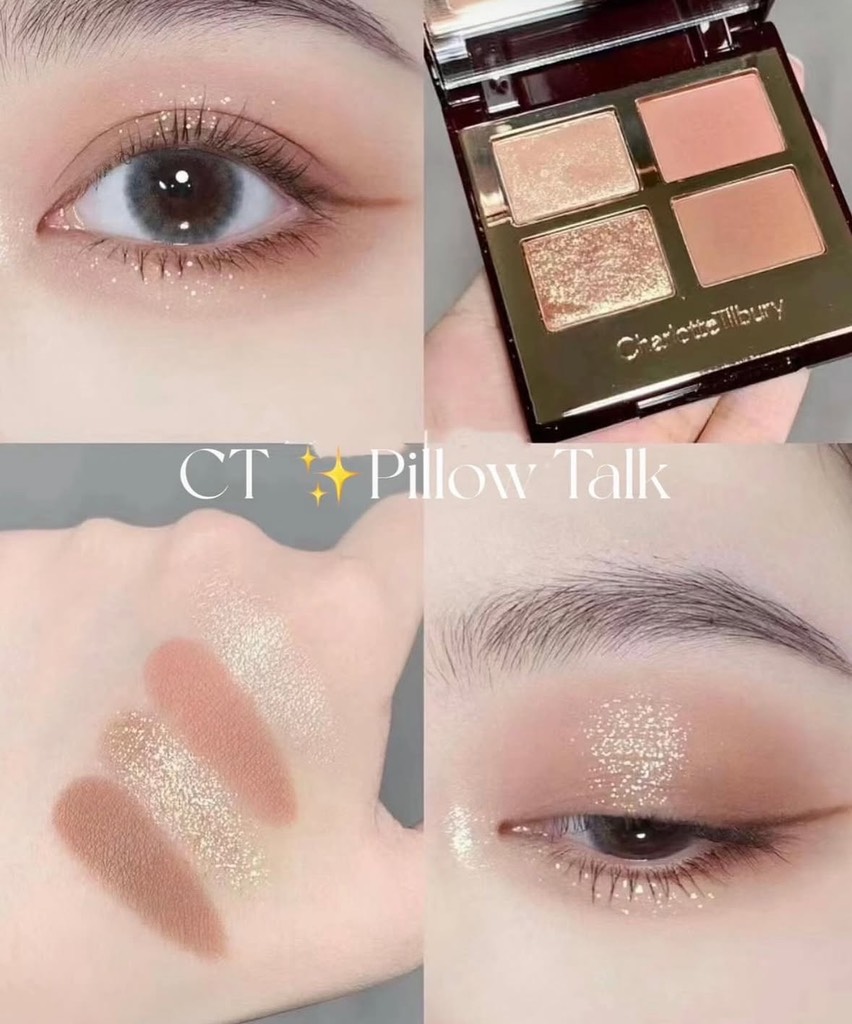 - Là màu bán chạy nhất trong dòng Charlotte Tilbury Luxury Eyeshadow Palette, phấn mắt Pilllow Talk giàu các sắc tố mang đến độ bóng mượt mà, lỗng lẫy, thôi miên ánh nhìn người đối diện.
