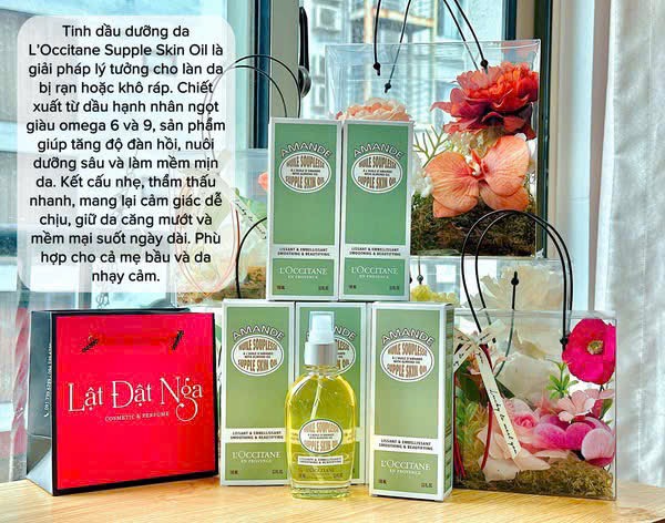 Tinh Dầu L'Occitane hạnh nhân là sản phẩm dưỡng da cô đặc từ dầu hạnh nhân và tinh dầu hoa hồng vùng Muscat hỗ trợ giúp phục hồi hàng rào hydro-lipid của da và cung cấp độ ẩm cho da ngay từ sâu bên trong, hỗ trợ giúp da săn chắc. Dầu hạnh nhân này chủ yếu được sử dụng cho tác động làm dịu và làm mềm trên da nhạy cảm và khô. Chính vì ưu điểm vượt trội làm giảm rạn da cực tốt nên rất được phái đẹp ưa chuộng.