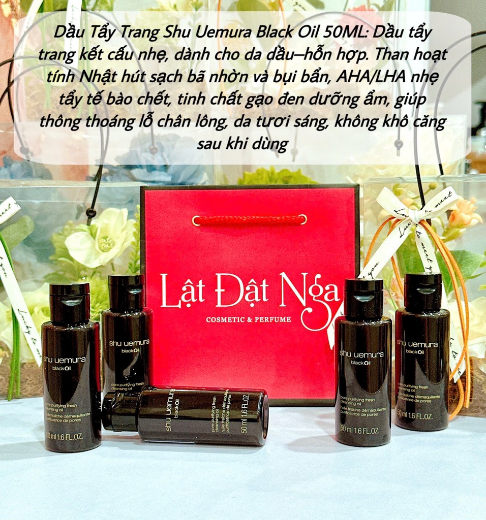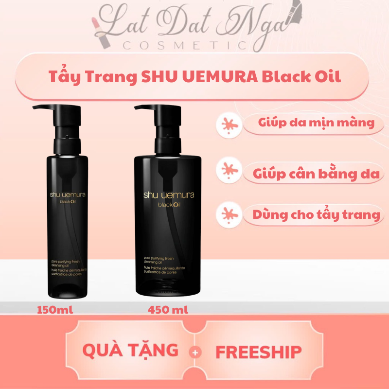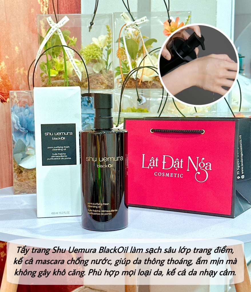 - Dầu tẩy trang Shu Uemura Black Oil được thiết kế dành cho da dầu/da hỗn hợp, sản phẩm có kết cấu nhẹ, tươi mát này giúp làm sạch lỗ chân lông tức thì và mang lại sự tươi mát lâu dài.