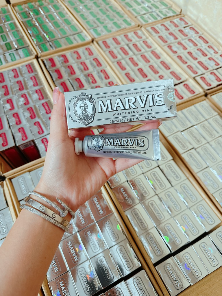 Kem Đánh Răng Marvis được nhập khẩu từ Florence, Italy. Là một thương hiệu nha khoa nỗi tiếng được yêu thích suốt nhiều thập kỷ. Marvis làm sạch khoang miệng, giúp răng trắng dần lên từng ngày, không làm tổn thương nướu và lợi còn làm răng thêm chắc khoẻ, hương thơm vô cùng độc đáo đem lại cho bạn hơi thở luôn thơm mát.