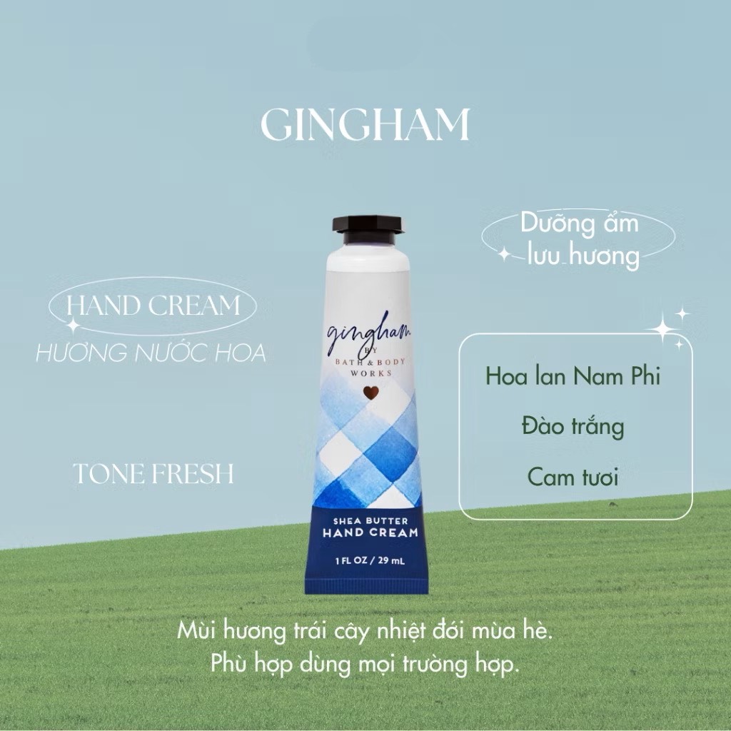 - Kem dưỡng da tay BBW nhỏ nhắn phù hợp mang theo mọi nơi. Đặc biệt là trong mùa dịch phải thường xuyên sát khuẩn dễ khiến da tay bị khô, đừng quên thủ sẵn tuýp kem để luôn giữ cho tay mềm mại.