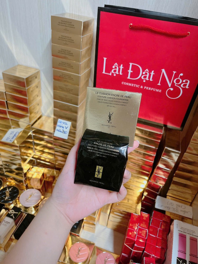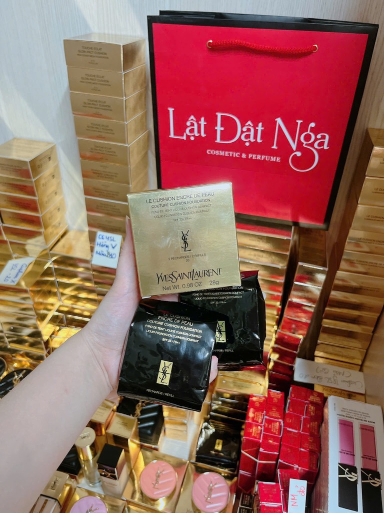 - Phấn nước YSL Le Cushion Encre De Peau Luminous Matte Cushion Foundation là dòng cushion mới nhất và được cải tiến hơn với thiết kế vỏ da chevron mang tính biểu tượng của Saint Laurent. Nhà YSL cực kỳ chiều lòng phái đẹp ở thị trường châu Á rộng lớn khi cho ra mắt sản phẩm này.
