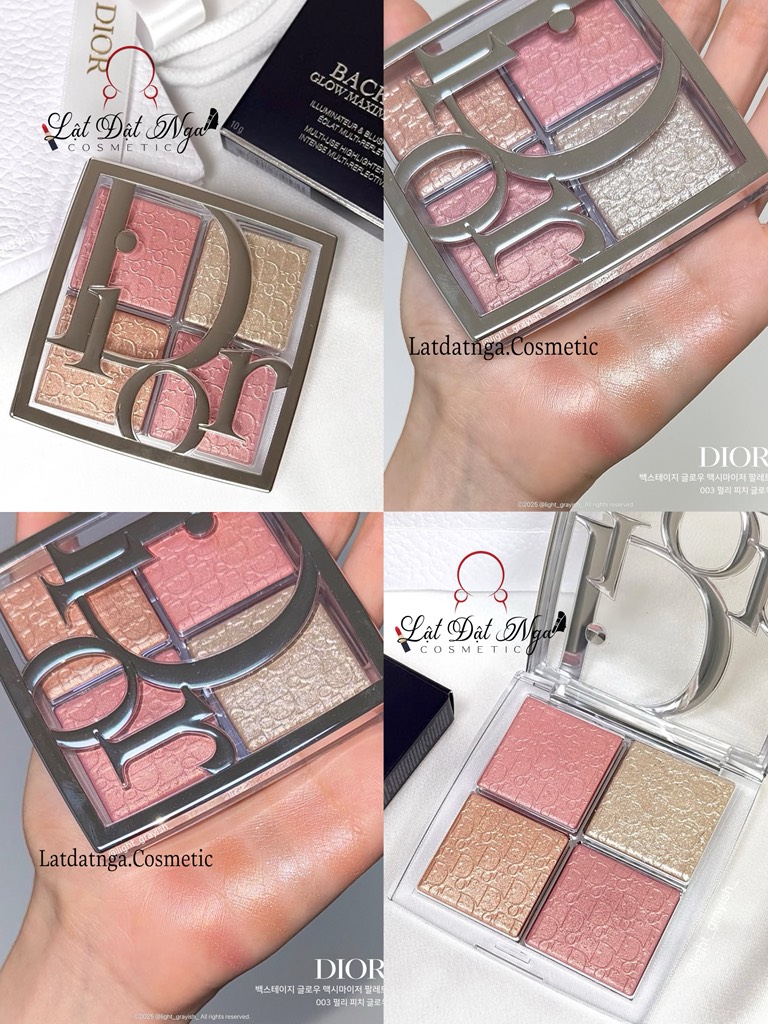 - Phấn Dior Backstage Glow Maximizer Palette 003 Pearly Peach Glow được áp dụng công thức dưỡng da độc quyền của thương hiệu giúp dưỡng ẩm cho môi và mi mắt, thấm nhanh giúp bạn thoải mái di chuyển, vận động mà vẫn giữ được lớp makeup. Kết cấu dạng bột, dễ dàng lướt nhẹ, với thành phần hoàn toàn lành tính giúp bảo vệ, dưỡng ẩm, ko làm dày da, bạn có thể mái, tự tin khi đi dự tiệc, đi làm đều rất phù hợp. Đây sẽ là thứ không thể thiếu trong túi đồ makeup của các chị em.