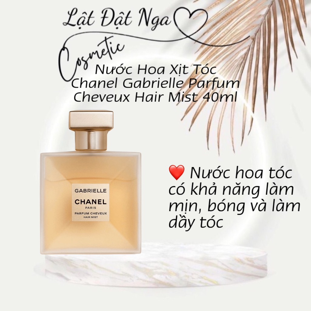 - Nước hoa xịt dưỡng tóc Chanel Gabrielle Parfum Cheveux The Hair Mist không chỉ vừa là nước hoa mà còn dưỡng tóc nữa. Mùa hè nóng bức, dùng nước hoa nhìu dễ ngộp, Hair Mist là sự lựa chọn đúng đắn. Chỉ cần mỗi lần hất tóc, vận động hay gió lướt qua thôi là hương thơm lại thoang thoảng siêu thích và rất dễ chịu.