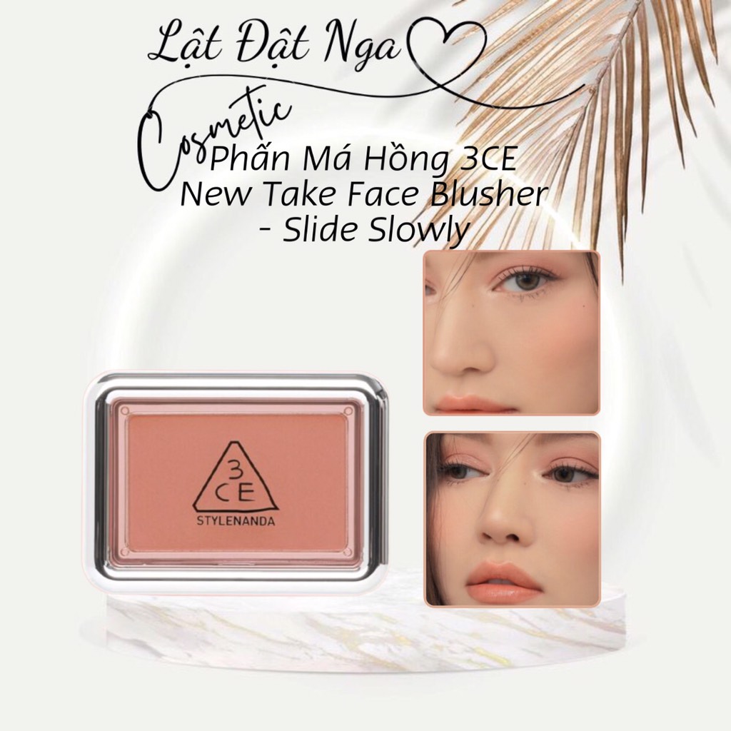 - Bảng phấn má hồng 3CE New Take Face Blusher 4.5g là dòng sản phẩm phấn má hồng dạng nén thuộc thương hiệu 3CE, với chất phấn mịn lì, nhỏ mịn có khả năng lên màu chuẩn xác, tự nhiên chỉ sau một lần lấy phấn, mang đến cho bạn sắc màu rạng rỡ và tinh tế.