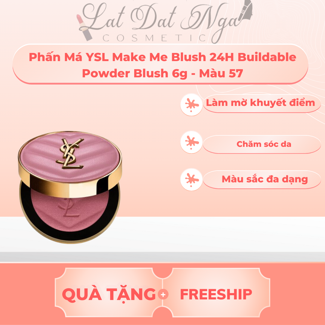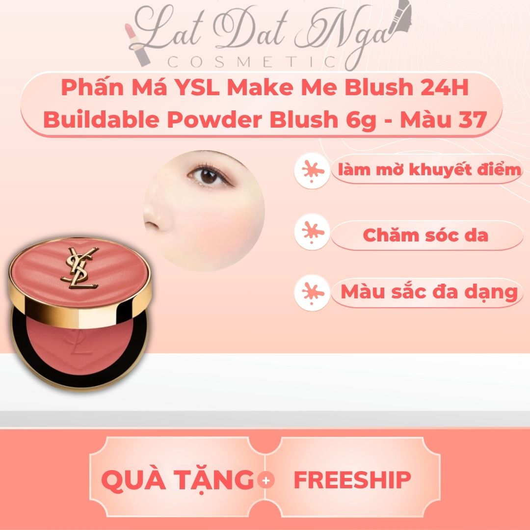 Phấn má YSL Make Me Blush 24H Buildable Powder Blush 6g là một sản phẩm phấn má hồng cao cấp đến từ thương hiệu mỹ phẩm nổi tiếng Yves Saint Laurent. Với công thức độc đáo, sản phẩm không chỉ mang đến màu má tươi tắn, bền màu mà còn có khả năng làm mờ lỗ chân lông và các khuyết điểm nhỏ trên da. Chất phấn mịn mượt, dễ tán đều, kết hợp với thiết kế sang trọng, YSL Make Me Blush nhanh chóng trở thành một trong những sản phẩm được yêu thích trong giới làm đẹp.