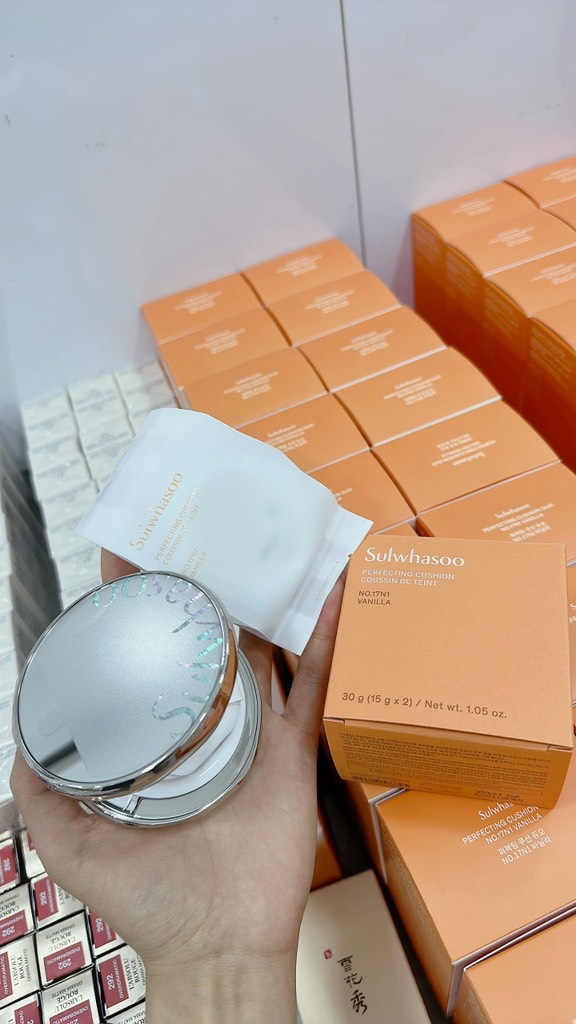 - Sulwhasoo Perfecting Cushion EX là sản phẩm bán chạy hàng triệu người yêu thích trên toàn cầu, cứ mỗi 7 giây là 1 sản phẩm được bán ra. Cushion trang điểm đa chức năng, dưỡng ẩm với khả năng che phủ cao, giúp che phủ khuyết điểm hoàn hảo và tăng độ đàn hồi của một làn da khỏe mạnh. Thiết kế hộp đựng mới sang trọng với hoa văn đặc trưng của Sulwhasoo, đại diện cho giá trị và nét tinh tế của thương hiệu.