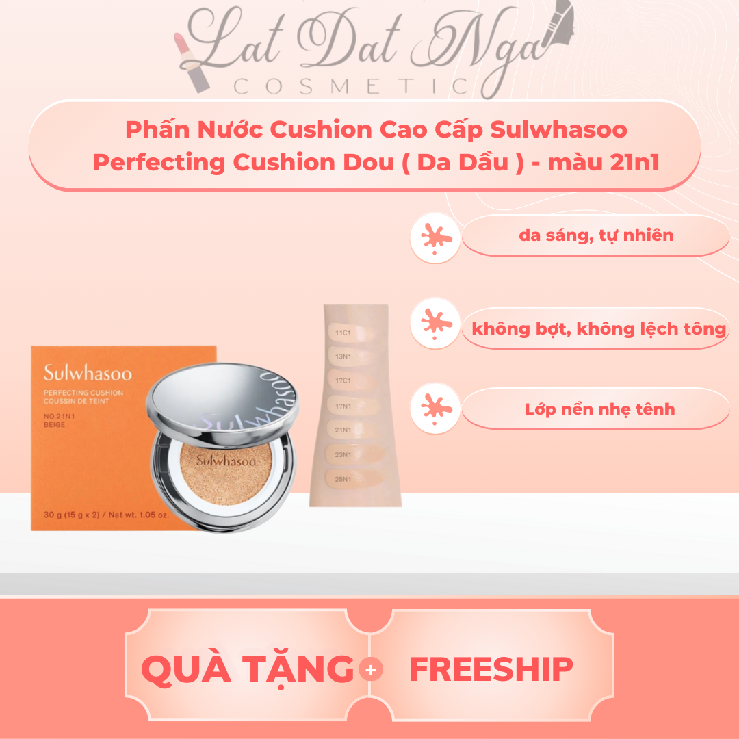 - Phấn Nước Trang Điểm Dưỡng Ẩm Sulwhasoo Perfecting Cushion Ex (Kèm lõi thay thế) 15g*2 là sản phẩm trang điểm đến từ thương hiệu nổi tiếng SULWHASOO của Hàn Quốc, công thức độc quyền từ Sulwhasoo Slim Fit High Coverage tạo nên lớp nền hoàn mỹ khả năng che phủ không tỳ vết và sự kết hợp đặc biệt cùng chiết xuất từ nấm Schizophyllum giúp dưỡng ẩm da liên tục, đem lại sức sống rạng rỡ, bóng khỏe, tự nhiên.