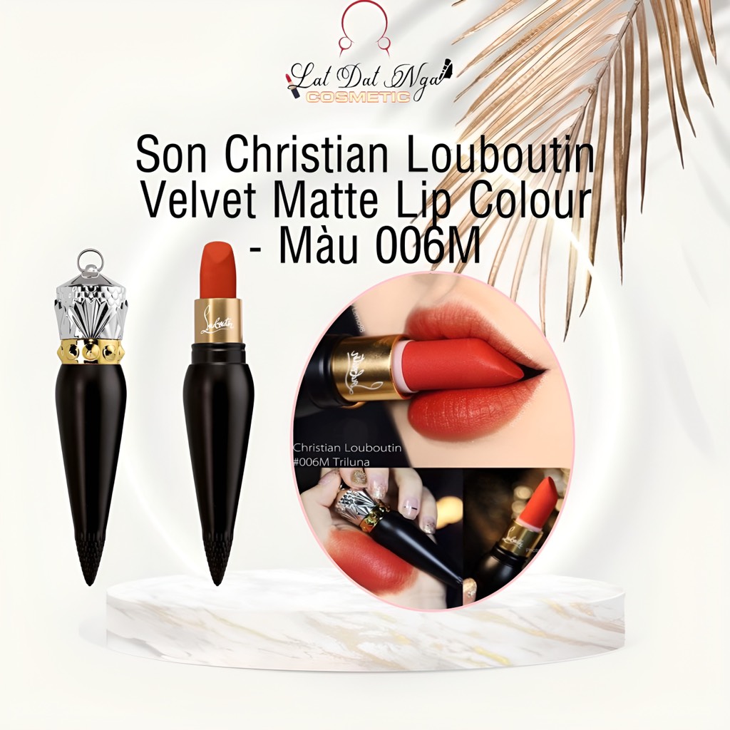 - Son Christian Louboutin Velvet Matte Lip Colour có chất son cực đỉnh lên môi Bạn sẽ cảm thấy mềm mại, không hề gây bết dính hay nứt nẻ. Cùng tone màu đỏ hồng ánh cam vô cùng lôi cuốn, rực rỡ… thỏi son môi cao cấp thuộc dòng son Christian Louboutin này đang trở thành sản phẩm được phái đẹp săn đón rất nhiều. Christian Louboutin Altressa có chất son lì mềm mướt cùng thiết kế đẳng cấp là những điều khiến thỏi son này được các cô nàng săn đón.