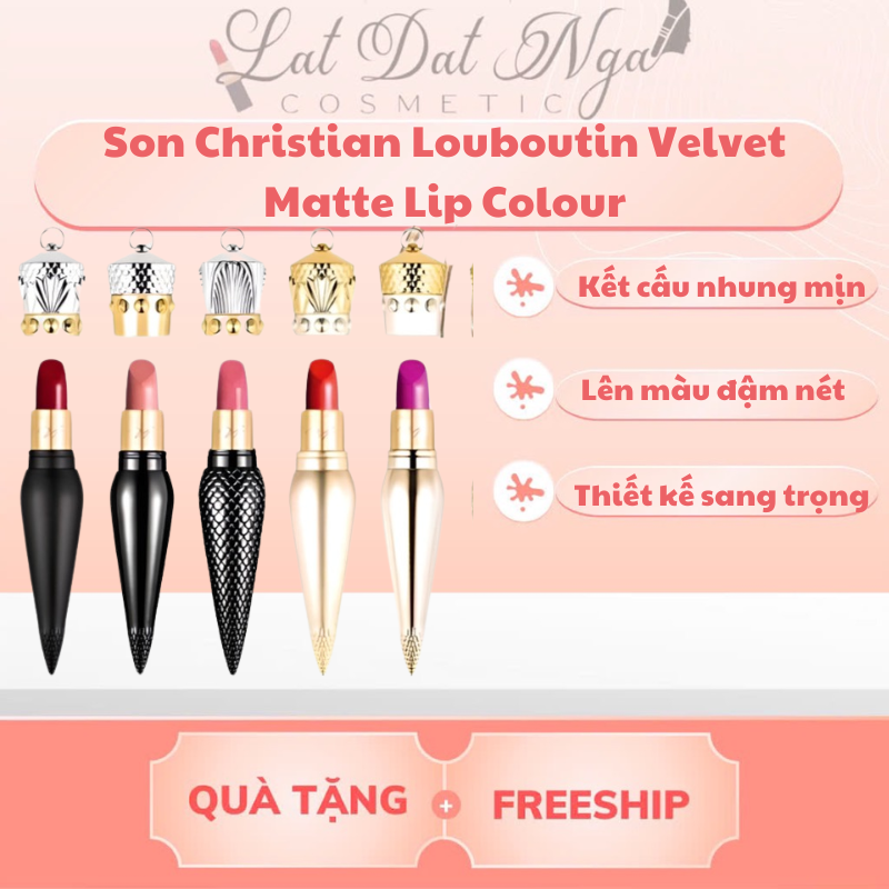 - Thỏi Son Christian Louboutin Velvet Matte Lip Colour có thiết kế độc đáo lấy cảm hứng từ Nữ hoàng Ai Cập Nefertiti cùng bảng màu đẹp khó cưỡng.
