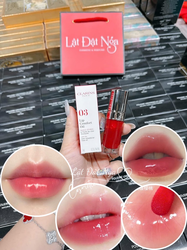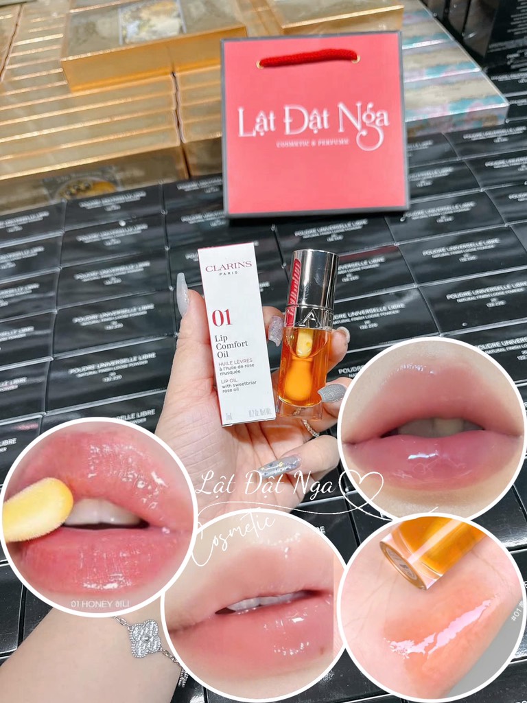 Clarins Lip Comfort Oil dưỡng ẩm lên môi với một chút màu sắc và độ bóng như gương. Kết cấu dầu dưỡng lướt nhẹ nhàng trên môi, mang lại cảm giác nhẹ nhàng, không dính, mang lại hiệu ứng ấn tượng có thể dùng làm lót trước khi dùng son hoặc phủ lên bất kỳ vết son môi hoặc vết bẩn nào để có thêm độ bóng cũng có thể dùng trần mang lại hiệu ứng màu sắc nhẹ nhàng, tự nhiên.
