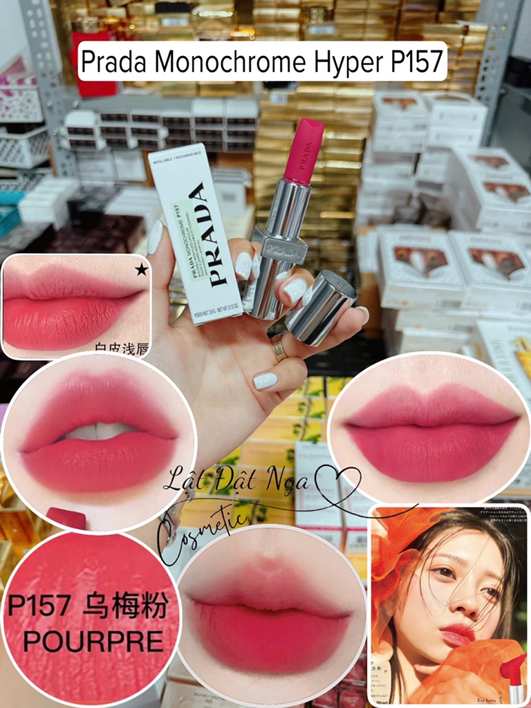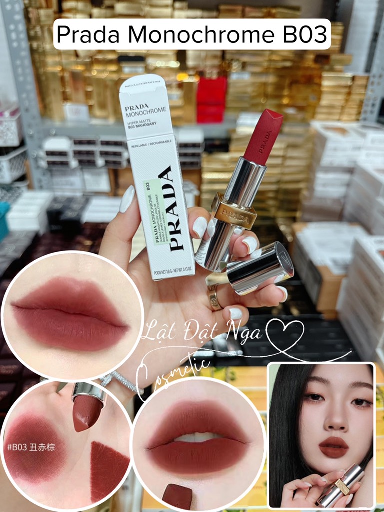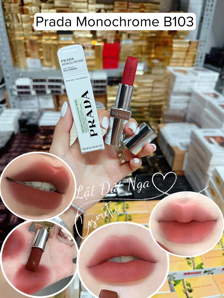 - Chất son của Prada Monochrome khắc phục hoàn toàn khuyết điểm của son lì thông thường, không bột, không lộ vân, không gây khô môi
