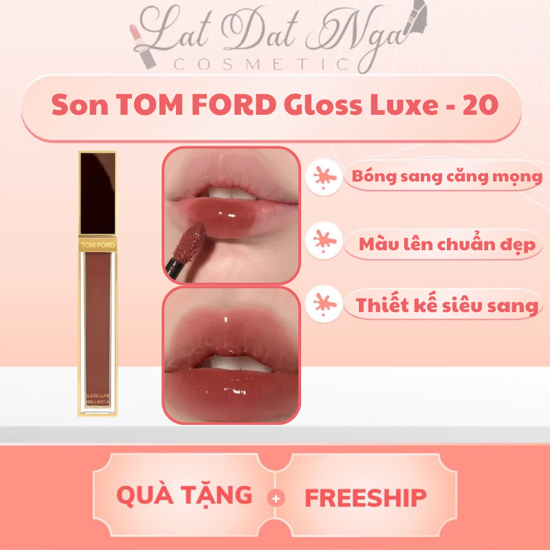 -Son kem TOM FORD Gloss Luxe Brillant A Levres Luxe Lip son dưỡng lỏng làm ẩm môi trong độ che phủ, từ trung bình đến bóng với độ bóng cao, giữ ẩm cho đôi môi đầy đặn, lung linh và bền đẹp.