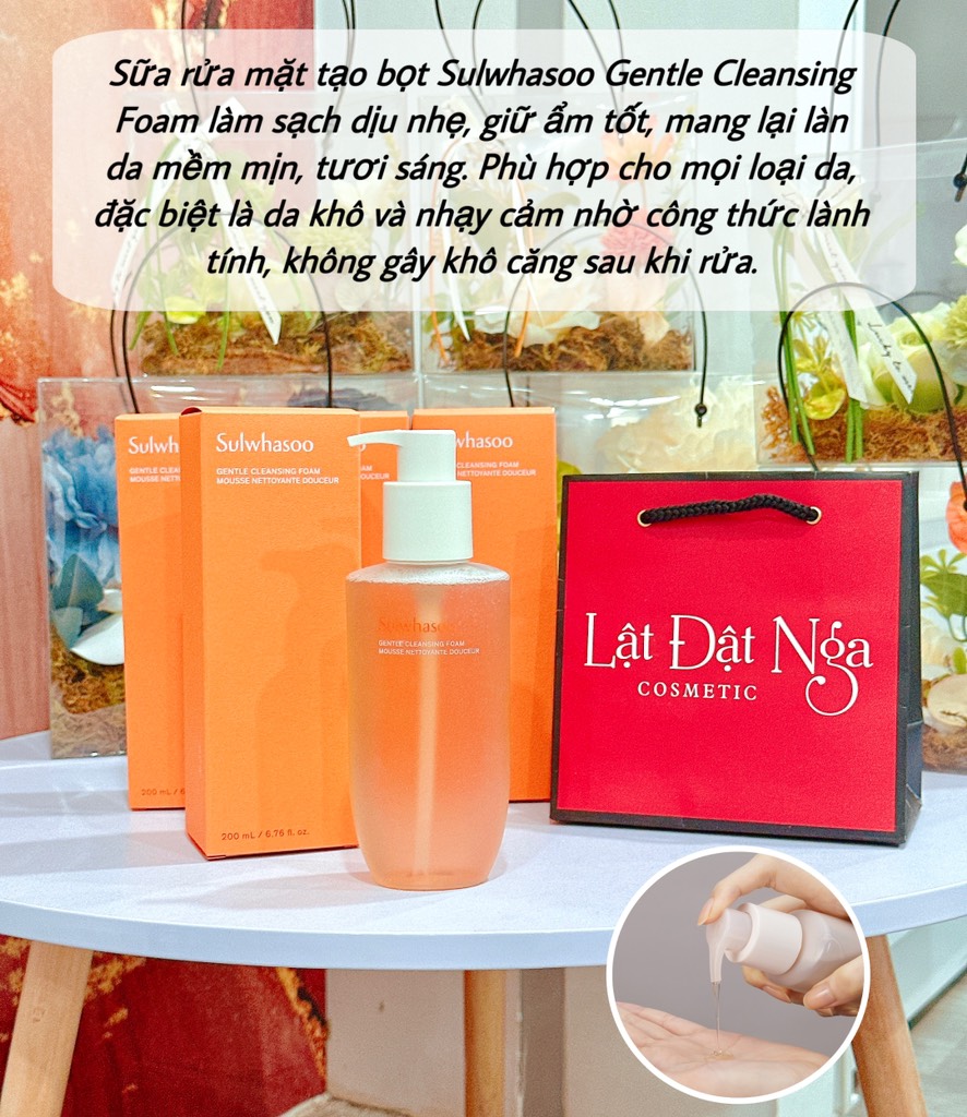 Sữa rửa mặt Sulwhasoo Gentle Cleansing Foam với thành phần chứa chiết xuất từ thảo dược phương Đông, nhẹ nhàng loại bỏ tạp chất trên da, nuôi dưỡng làn da ẩm mượt, mịn màng mà không tạo cảm giác khô căng.