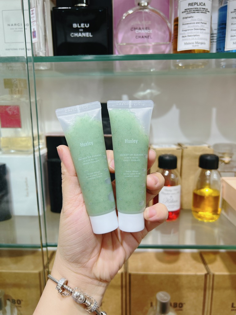 - Giới thiệu đến các bạn một sản phẩm tẩy tế bào chết kiêm mặt nạ dưỡng da 2 trong 1 đến từ thương hiệu mỹ phẩm thiên nhiên Huxley Hàn Quốc, một trong những sản phẩm rất được yêu chuộng bởi các tín đồ làm đẹp ở xứ sở Kim Chi - Mặt Nạ Tẩy Tế Bào Chết Huxley Scrub Mask - Sweet Therapy. Mặt nạ tẩy da chết này sẽ giúp lấy đi bụi bẩn và các tế bào chết trên da với các thành phần tẩy da chết từ thiên nhiên như đường, vỏ hạt óc chó nghiền nhuyễn… mang lại làn da mịn màng, rạng rỡ mà không gây kích ứng hay làm khô căng da. Ngoài ra, sản phẩm chứa chiết xuất từ cây xương rồng Sahara tươi và tinh dầu xương rồng ép cơ tay 100%, giàu Linoleic Acid và Vitamin E có khả năng cung cấp độ ẩm, dưỡng ẩm cho làn da thêm mềm mịn, đồng thời chống oxy hóa, ngăn ngừa các dấu hiệu lão hóa da.