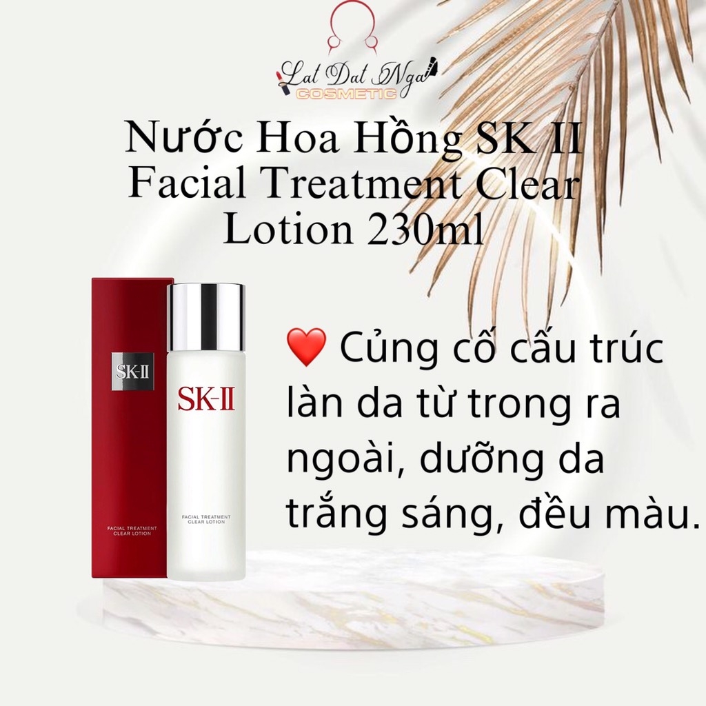 - Facial Treatment Clear Lotion được phái đẹp ngợi khen và đánh giá là một bước đệm hoàn hảo, kết hợp với nước thần SK-II Facial Treatment Essence để mang lại làn da căng mướt, trắng sáng, rạng ngời sức sống.