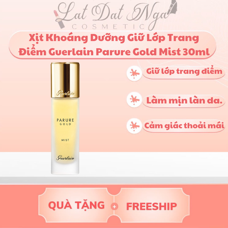 - Xịt Khoáng Dưỡng Giữ Lớp Trang Điểm Guerlain Parure Gold Mist 30ml là dòng sản phẩm cao cấp đến từ thương hiệu Guerlain nổi tiếng. Parure Gold Mist là bước cuối cùng cho kết quả trang điểm hoàn hảo. Nó thiết lập trang điểm và mang lại một kết thúc rạng rỡ hơn cho lớp trang điểm giữ được lâu hơn.