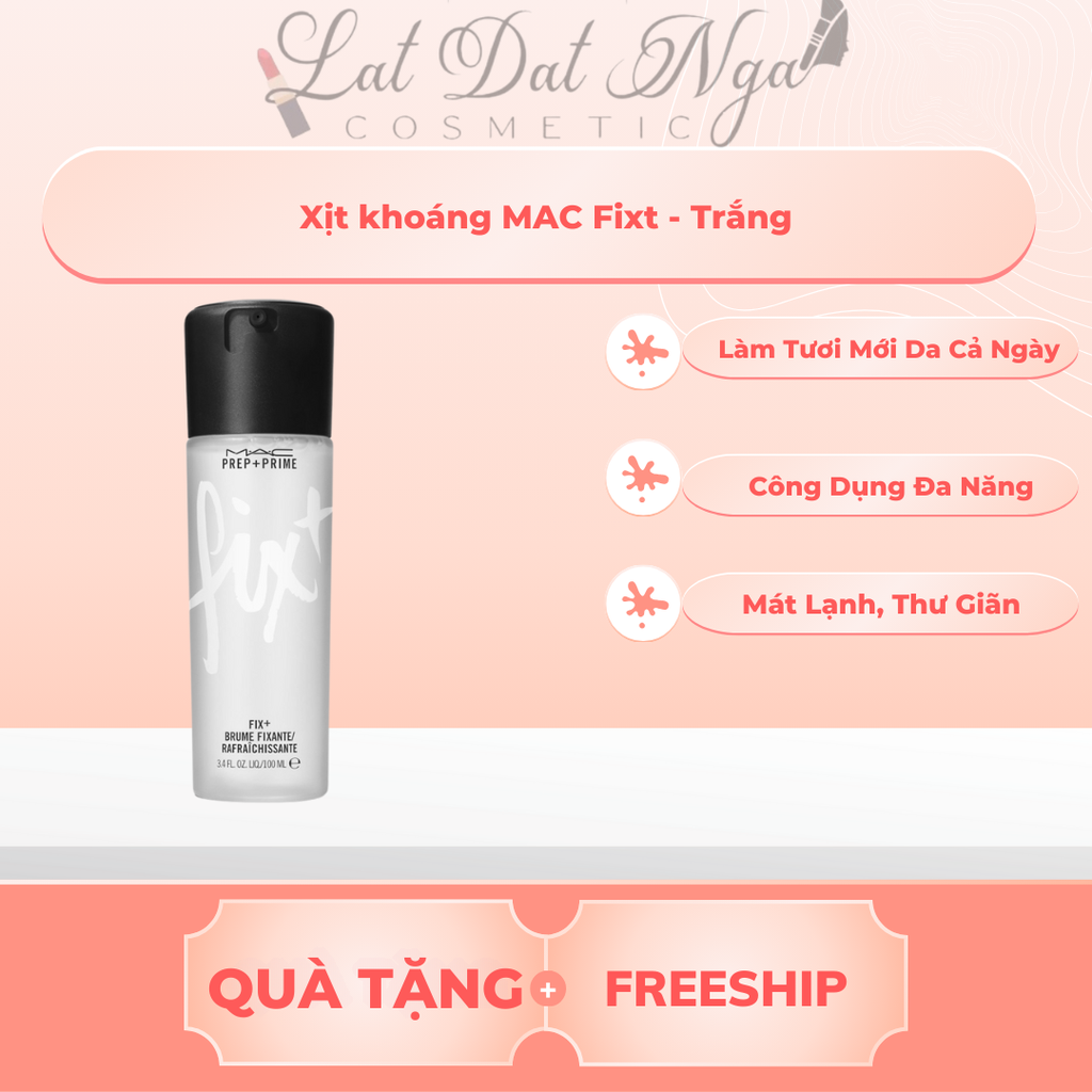 - M.A.C Xịt Khoáng, Khóa Makeup, Chống Nắng- MAC - Prep + Prime Fix + Spf 30-100ml Sản phẩm đa dzi năng vừa giúp hoàn thiện giữ bền cho lớp makeup, xịt khoáng da và còn có khả năng chống nắng thì đây là sư lựa chọn đúng không thể hoàn hảo hơn Có chứa các chất chống oxy hóa tốt cho làn da, thành phần khoáng chất và nước giúp giữ ẩm cho da và chống nắng đỉnh
